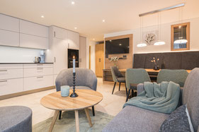 Unsere grösste Wohnung mit 3 Doppelzimmer und 2 Dusch/ WC für bis zu 6 Personen.